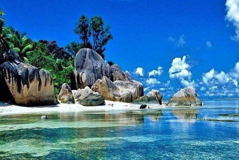 Dikenal sebagai titik keberangkatan island hopping, pantai ini menawarkan pemandangan laut biru jernih dengan jajaran batu granit besar yang membentuk siluet unik. Suasananya santai dan nyaman untuk bersantai menikmati sunset.