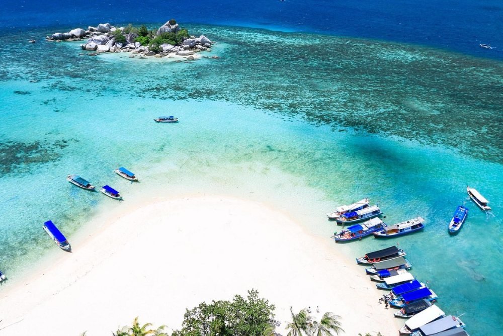 Pulau mungil yang dipenuhi batu-batu granit besar seolah “berlayar” di atas permukaan laut. Pulau ini biasanya muncul saat air surut dan menjadi spot foto yang unik.